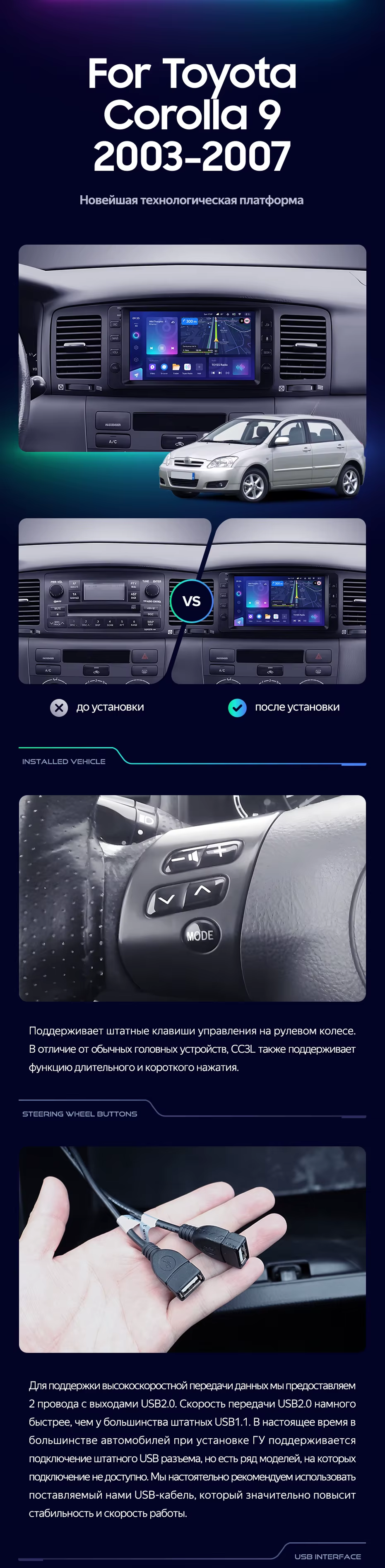 Переходная рамка Toyota Corolla 9 E120 E130 (2003-2007) (7") - купить всего за 3 800 руб. в интернет-магазине в Казани Teyes.com.ru. ✓ Самый лучший выбор мультимедиа ✓ Лучшая замена штатному ГУ ✓ Тел. +7 (800) 775-31-74