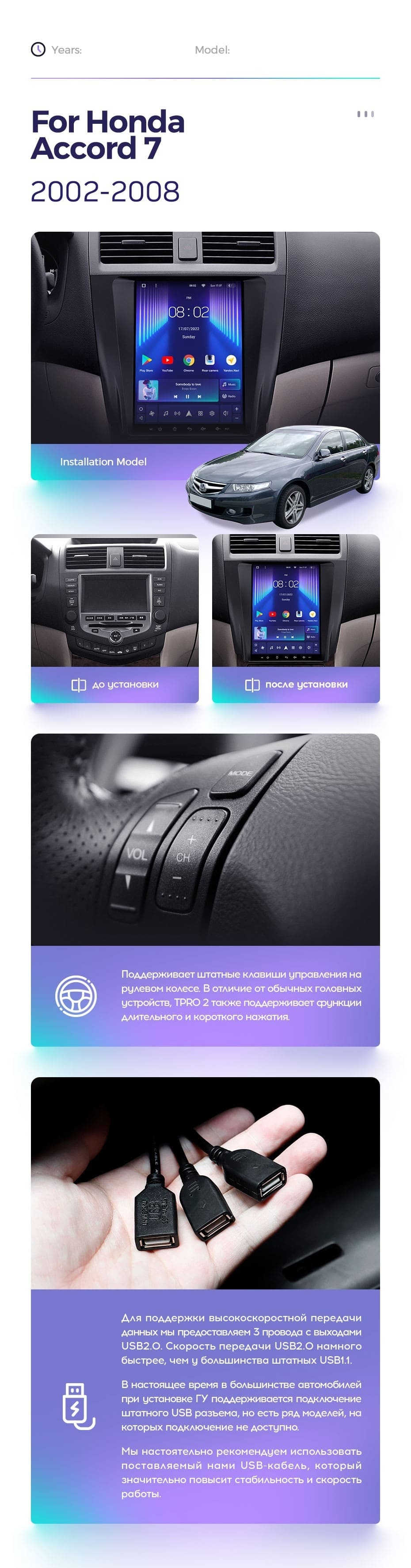 Штатная магнитола Tesla style Teyes TPRO 2 4/64 Honda Accord 7 CM UC CL (2002-2008) - купить всего за 37 500 руб. в интернет-магазине в Казани Teyes.com.ru. ✓ Самый лучший выбор мультимедиа ✓ Лучшая замена штатному ГУ ✓ Тел. +7 (800) 775-31-74