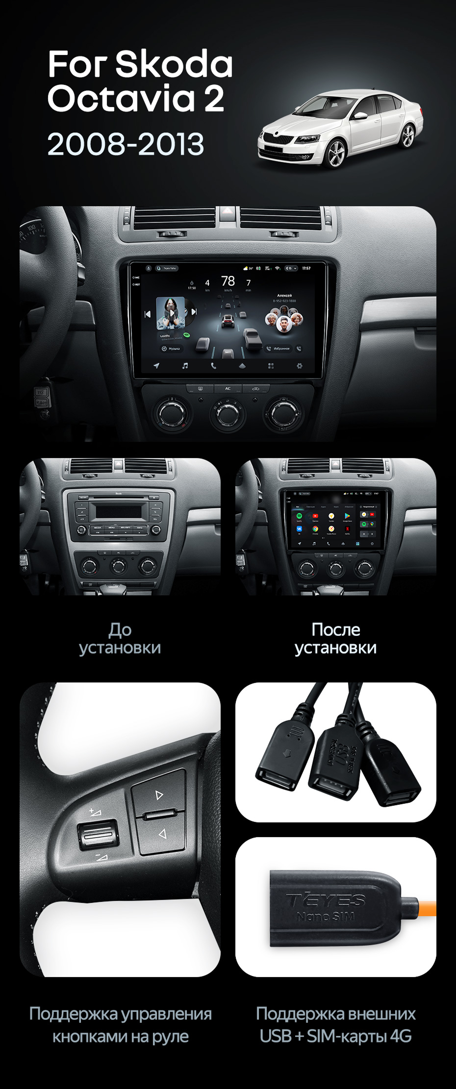 Штатная магнитола Teyes CC4 Pro 8/128 Skoda Octavia 2 A5 (2008-2013) (13") - купить всего за 72 740 руб. в интернет-магазине в Казани Teyes.com.ru. ✓ Самый лучший выбор мультимедиа ✓ Лучшая замена штатному ГУ ✓ Тел. +7 (800) 775-31-74