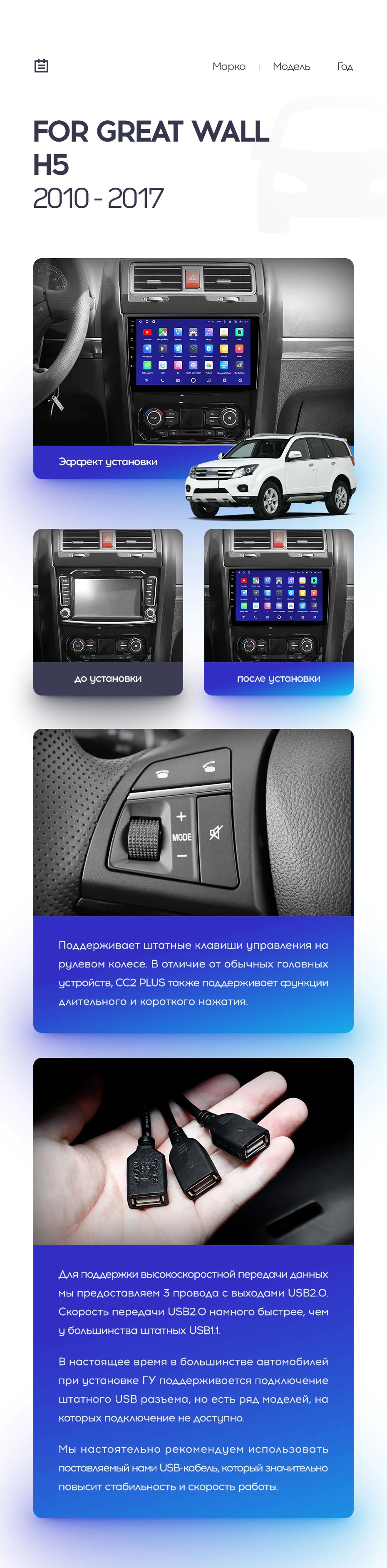 | Дополнительные аксессуары | USB-видеорегистратор, TPMS, передние парктроники, диагностический адаптер OBD | USB-видеорегистратор, TPMS, передние парктроники, диагностический адаптер OBD | USB-видеорегистратор, TPMS |