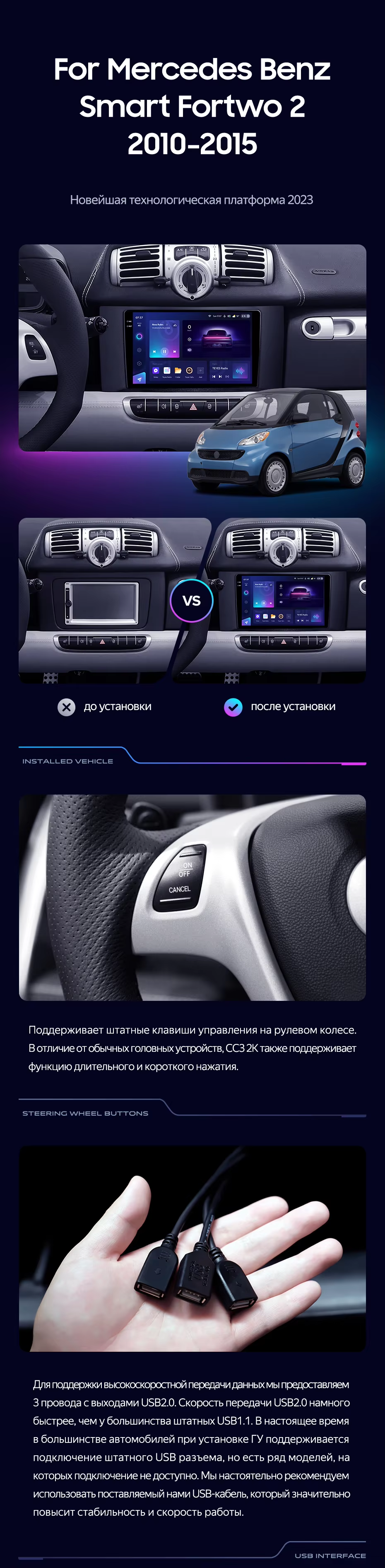 Штатная магнитола Teyes CC3 2K 6/128 Mercedes-Benz Smart Fortwo 2 (2010-2015) F1 - купить всего за 52 800 руб. в интернет-магазине в Казани Teyes.com.ru. ✓ Самый лучший выбор мультимедиа ✓ Лучшая замена штатному ГУ ✓ Тел. +7 (800) 775-31-74