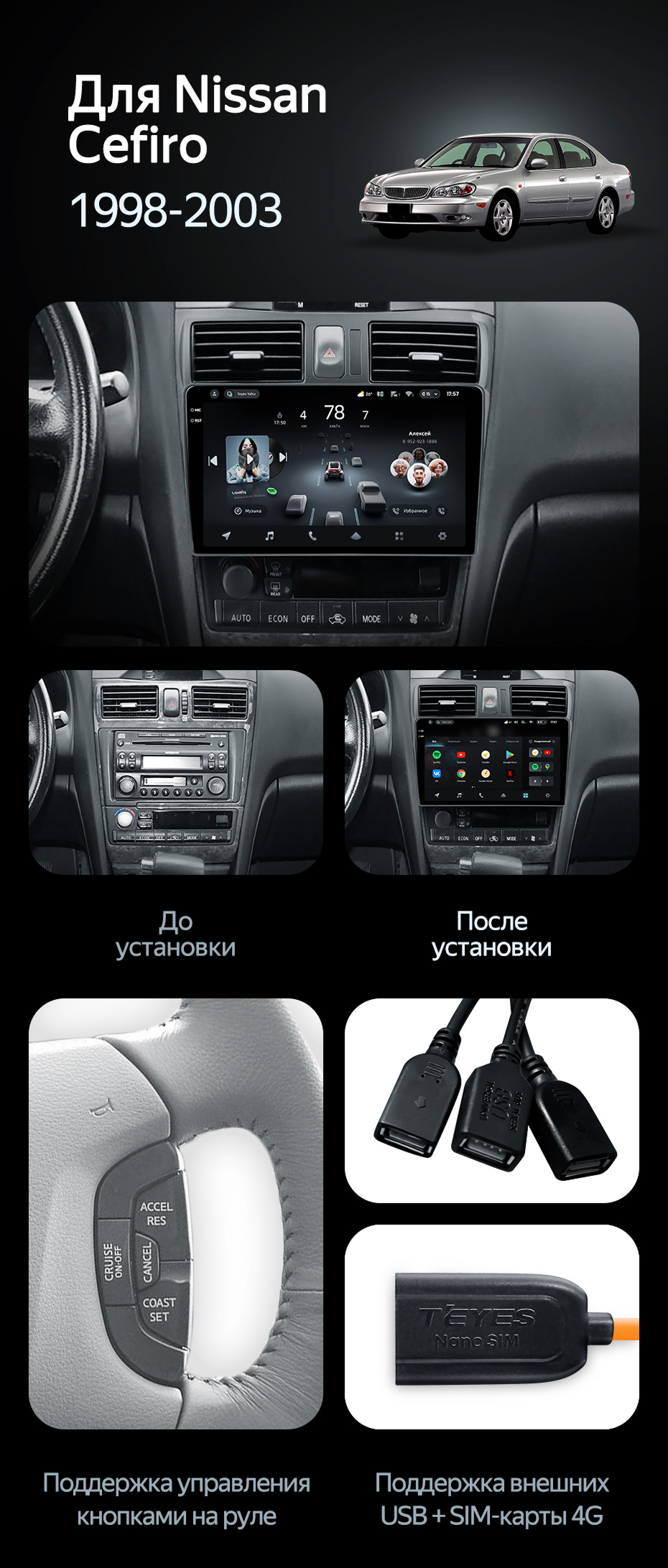 Штатная магнитола Teyes CC3 2K 6/128 Nissan Cefiro 3 A33 (1998-2003) F2 - купить всего за 53 000 руб. в интернет-магазине в Казани Teyes.com.ru. ✓ Самый лучший выбор мультимедиа ✓ Лучшая замена штатному ГУ ✓ Тел. +7 (800) 775-31-74