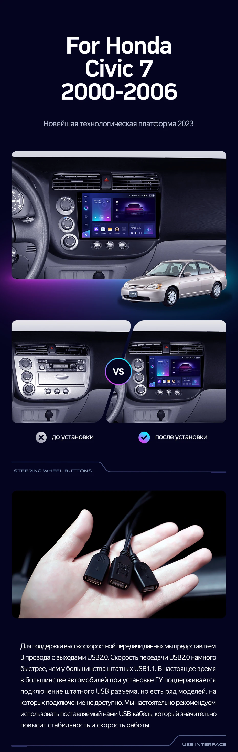 Штатная магнитола Teyes CC3L 4/64 Honda Civic 7 (2000-2006) F3 Правый руль - купить всего за 28 800 руб. в интернет-магазине в Казани Teyes.com.ru. ✓ Самый лучший выбор мультимедиа ✓ Лучшая замена штатному ГУ ✓ Тел. +7 (800) 775-31-74
