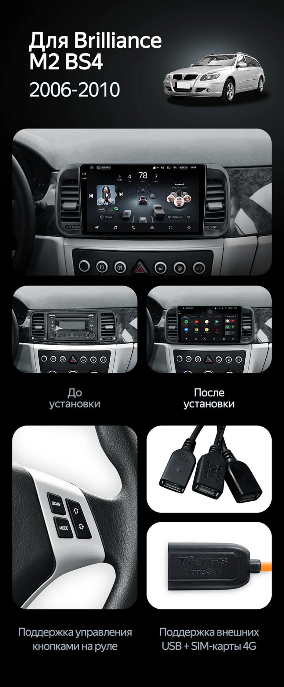 Штатная магнитола Teyes CC4 Pro 12/256 Brilliance M2 (BS4) (2006-2010) - купить всего за 66 870 руб. в интернет-магазине в Казани Teyes.com.ru. ✓ Самый лучший выбор мультимедиа ✓ Лучшая замена штатному ГУ ✓ Тел. +7 (800) 775-31-74