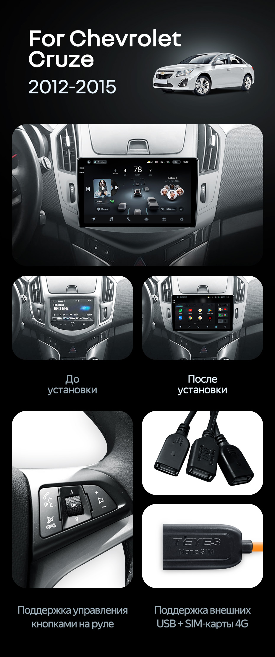 Штатная магнитола Teyes CC4 Pro 12/256 Chevrolet Cruze J300 J308 (2012-2015) F1 - купить всего за 66 530 руб. в интернет-магазине в Казани Teyes.com.ru. ✓ Самый лучший выбор мультимедиа ✓ Лучшая замена штатному ГУ ✓ Тел. +7 (800) 775-31-74