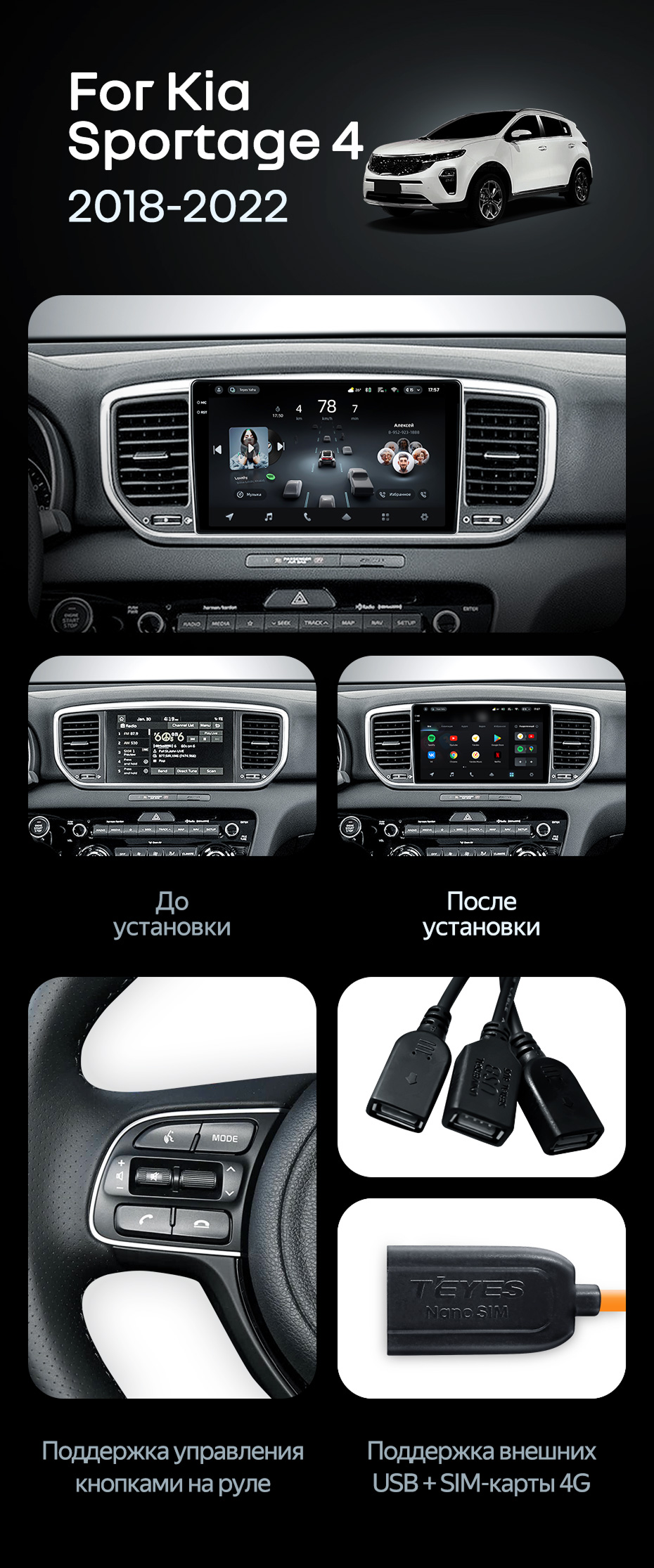 Штатная магнитола Teyes CC4 Pro 12/256 Kia Sportage 4 QL (2018-2022) Тип-A - купить всего за 65 760 руб. в интернет-магазине в Казани Teyes.com.ru. ✓ Самый лучший выбор мультимедиа ✓ Лучшая замена штатному ГУ ✓ Тел. +7 (800) 775-31-74