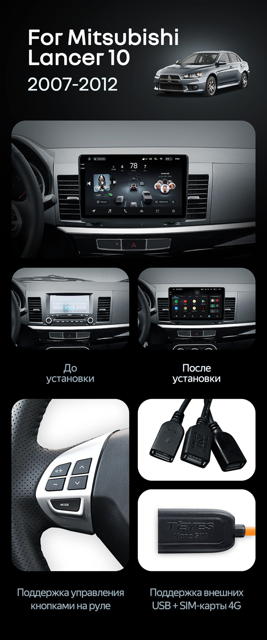 Штатная магнитола Teyes CC4 Pro 12/256 Mitsubishi Lancer 10 CY (2007-2012) Тип-A - купить всего за 66 000 руб. в интернет-магазине в Казани Teyes.com.ru. ✓ Самый лучший выбор мультимедиа ✓ Лучшая замена штатному ГУ ✓ Тел. +7 (800) 775-31-74