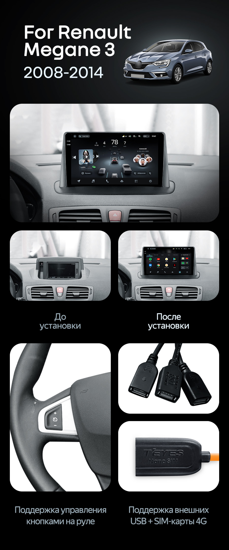 Штатная магнитола Teyes CC4 Pro 12/256 Renault Megane 3 (2008-2014) - купить всего за 76 630 руб. в интернет-магазине в Казани Teyes.com.ru. ✓ Самый лучший выбор мультимедиа ✓ Лучшая замена штатному ГУ ✓ Тел. +7 (800) 775-31-74