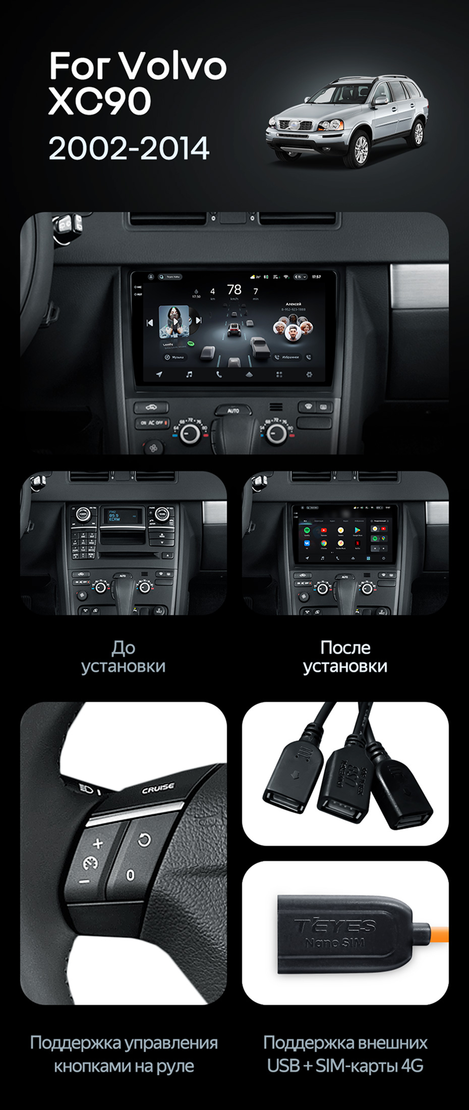 Штатная магнитола Teyes CC4 Pro 12/256 Volvo XC90 (2007-2014) F2 (комплект для установки нижней части) - купить всего за 70 300 руб. в интернет-магазине в Казани Teyes.com.ru. ✓ Самый лучший выбор мультимедиа ✓ Лучшая замена штатному ГУ ✓ Тел. +7 (800) 775-31-74