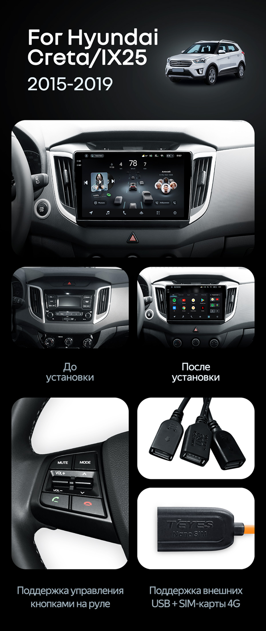 Штатная магнитола Teyes CC4 Pro 8/128 Hyundai Creta 1 (2015-2019) с кнопками - купить всего за 65 470 руб. в интернет-магазине в Казани Teyes.com.ru. ✓ Самый лучший выбор мультимедиа ✓ Лучшая замена штатному ГУ ✓ Тел. +7 (800) 775-31-74