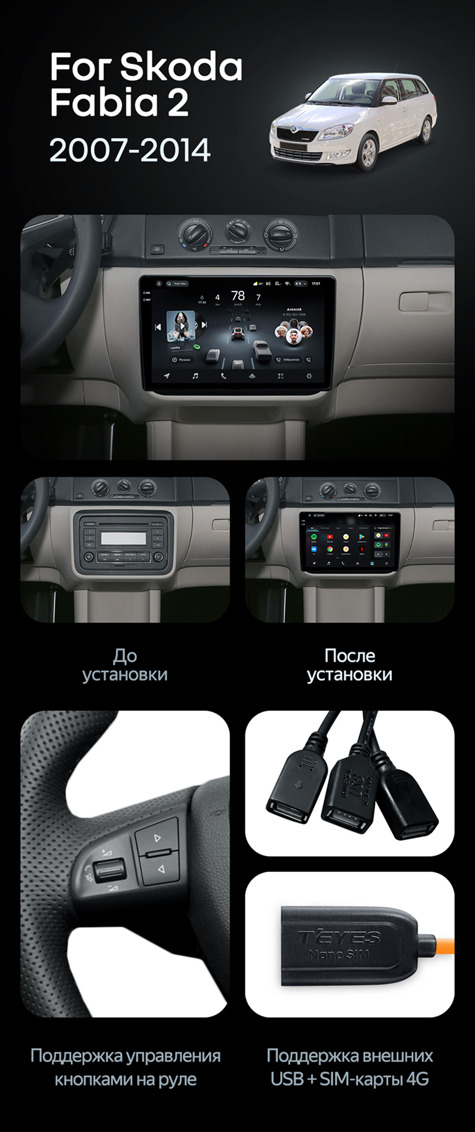 Штатная магнитола Teyes CC4 Pro 8/128 Skoda Fabia 2 (2007-2014) - купить всего за 65 540 руб. в интернет-магазине в Казани Teyes.com.ru. ✓ Самый лучший выбор мультимедиа ✓ Лучшая замена штатному ГУ ✓ Тел. +7 (800) 775-31-74
