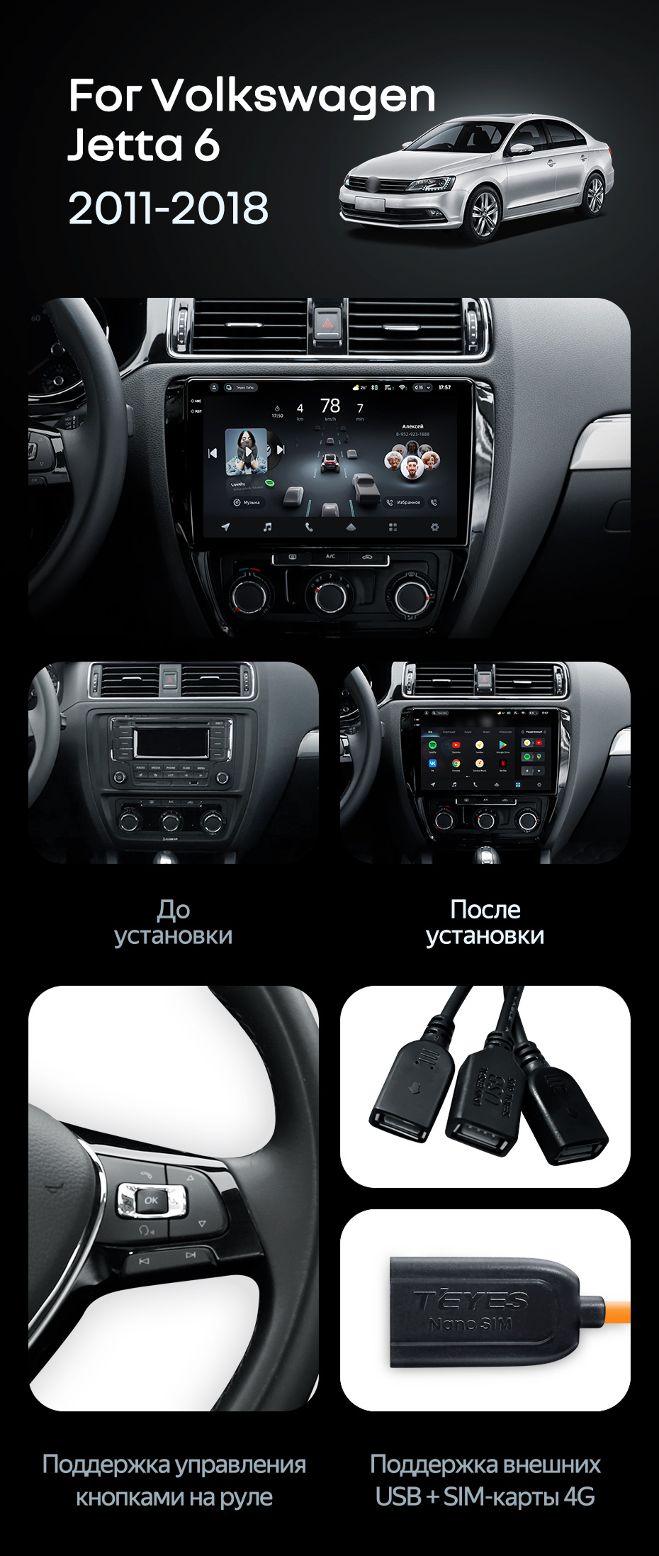 Штатная магнитола Teyes CC4 Pro 8/128 Volkswagen Jetta 6 (2011-2018) - купить всего за 56 300 руб. в интернет-магазине в Казани Teyes.com.ru. ✓ Самый лучший выбор мультимедиа ✓ Лучшая замена штатному ГУ ✓ Тел. +7 (800) 775-31-74