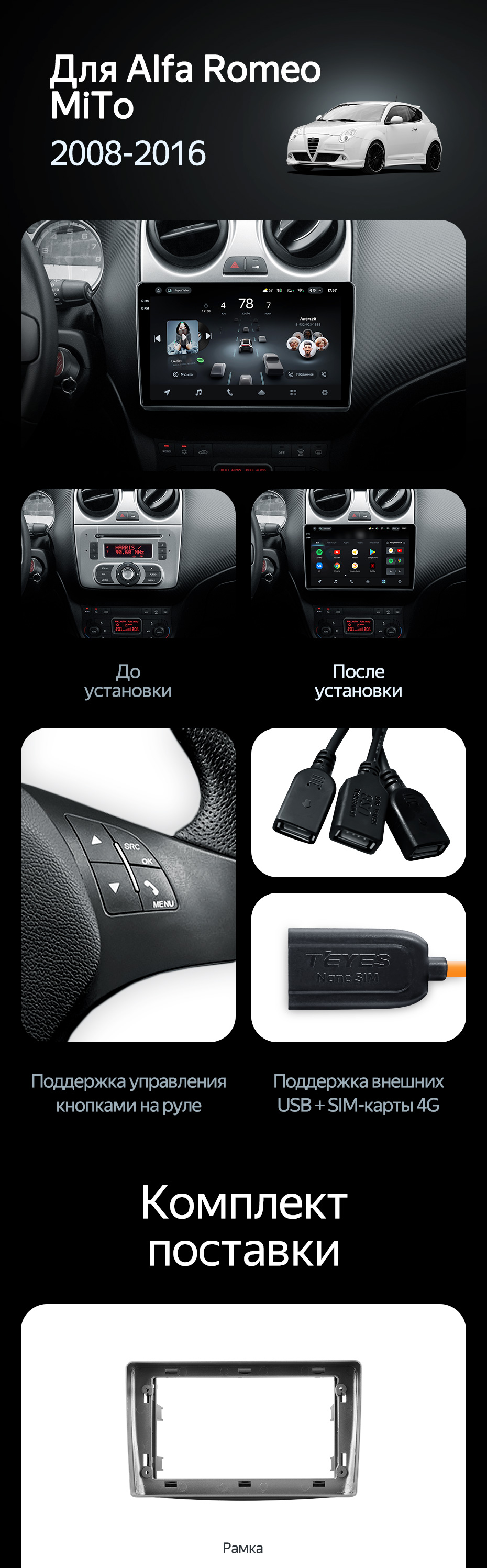 Штатная магнитола Teyes CC4L 6/64 Alfa Romeo MiTo 955 (2008-2016) - купить всего за 33 500 руб. в интернет-магазине в Казани Teyes.com.ru. ✓ Самый лучший выбор мультимедиа ✓ Лучшая замена штатному ГУ ✓ Тел. +7 (800) 775-31-74