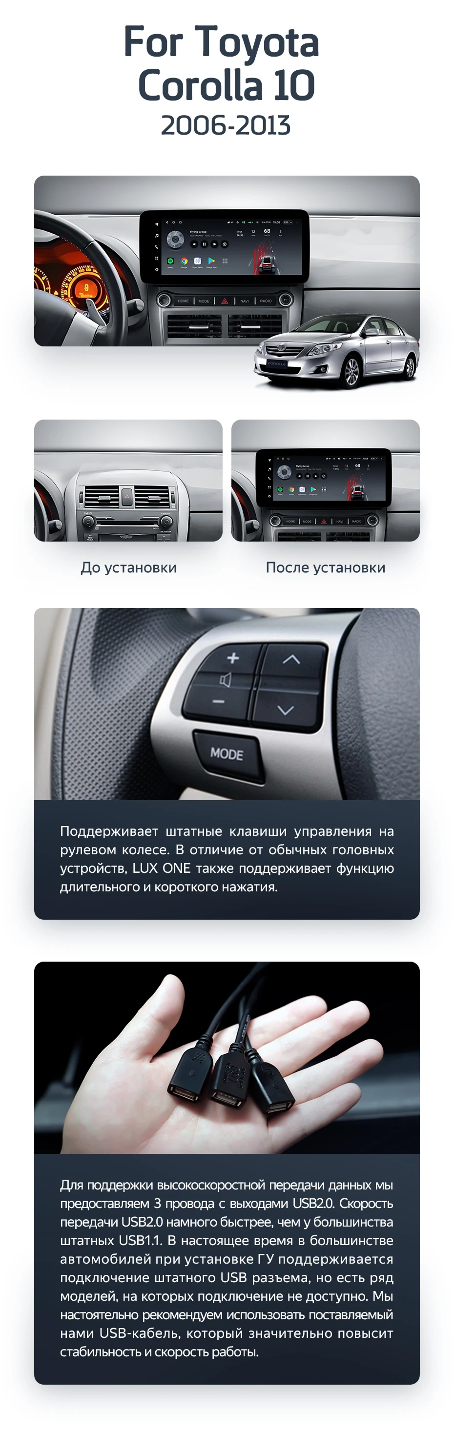 Штатная магнитола Teyes LUX ONE 4/32 Toyota Corolla 10 E140 E150 (2006-2013) - купить всего за 43 630 руб. в интернет-магазине в Казани Teyes.com.ru. ✓ Самый лучший выбор мультимедиа ✓ Лучшая замена штатному ГУ ✓ Тел. +7 (800) 775-31-74