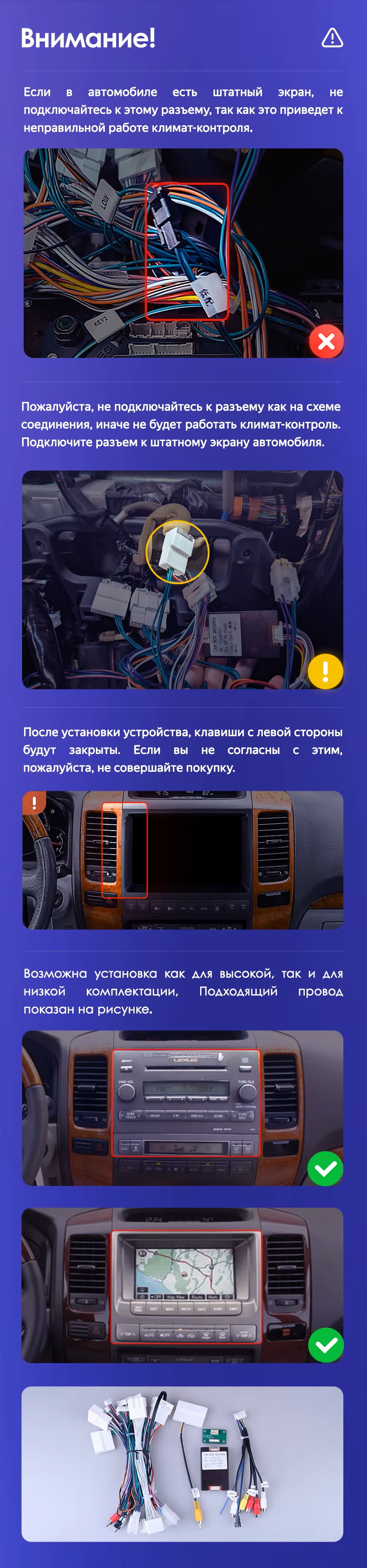 Готовый установочный комплект для магнитолы Toyota Land Cruiser Prado 120 / Lexus GX470 GX 470 J120 (2002-2009) 9 дюймов в штатное место, включает переходную рамку и проводку.