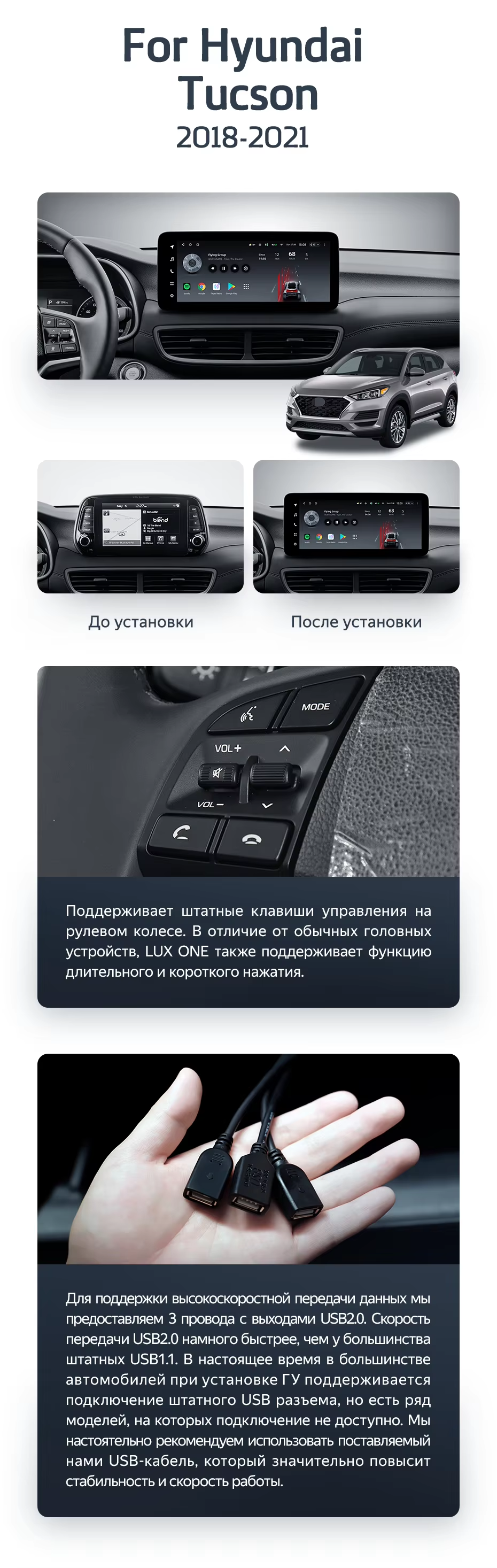 Полный комплект установки магнитолы Teyes с рамкой и проводкой можно выбрать в каталоге штатных магнитол Hyundai Tucson (2018-2021).